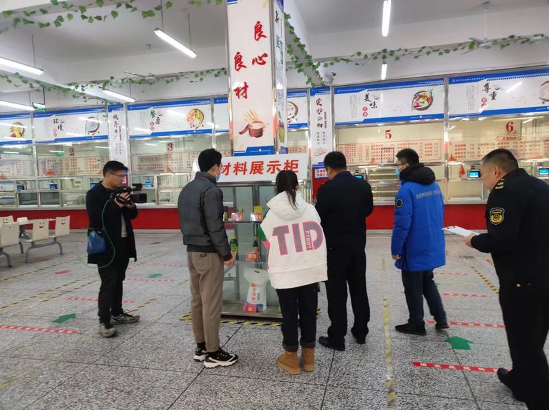 news center2023年12月29日上午 市市場監(jiān)督管理局陽光執(zhí)法欄目對我公司經(jīng)營的河師大附屬中學(xué)學(xué)生餐廳進行檢查 并對日常管理工作進行肯定