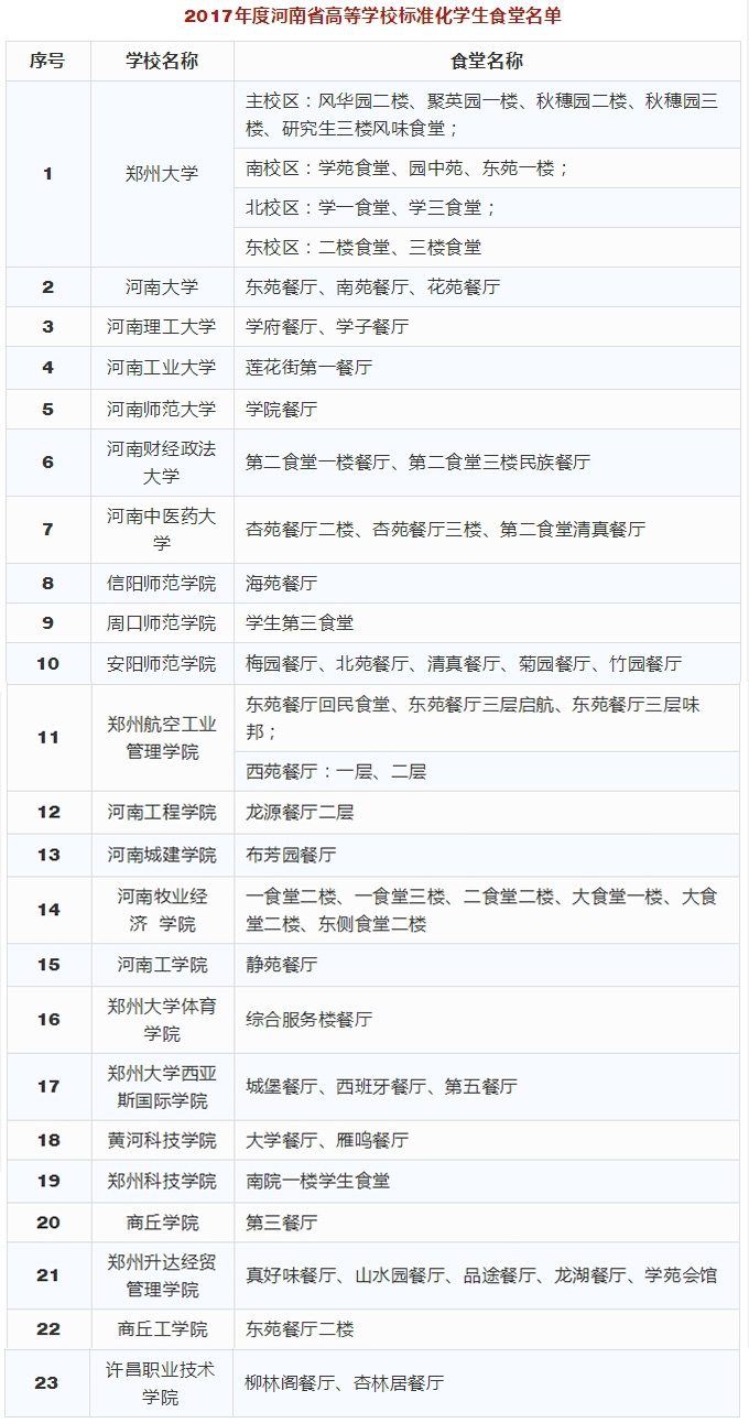 根據**組推薦結果,經研究,4月23日,河南省教育廳對2017年度河南省高等學校標準化學生公寓和標準化學生食堂評審結果進行了公示。快看你家學校公寓和食堂入選了沒!